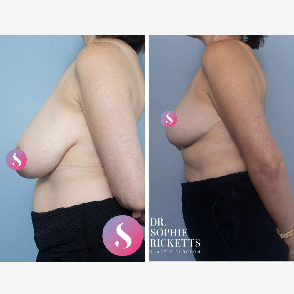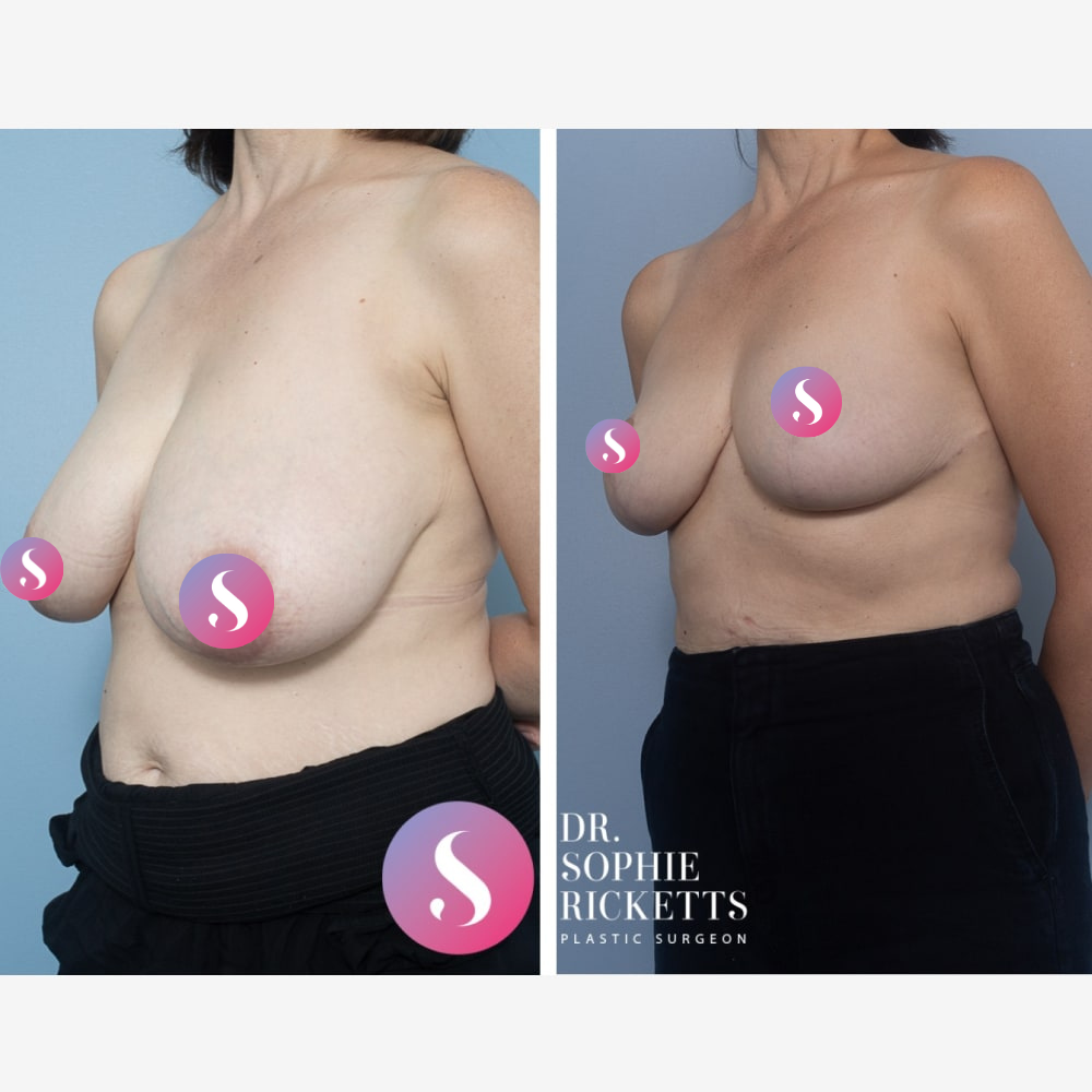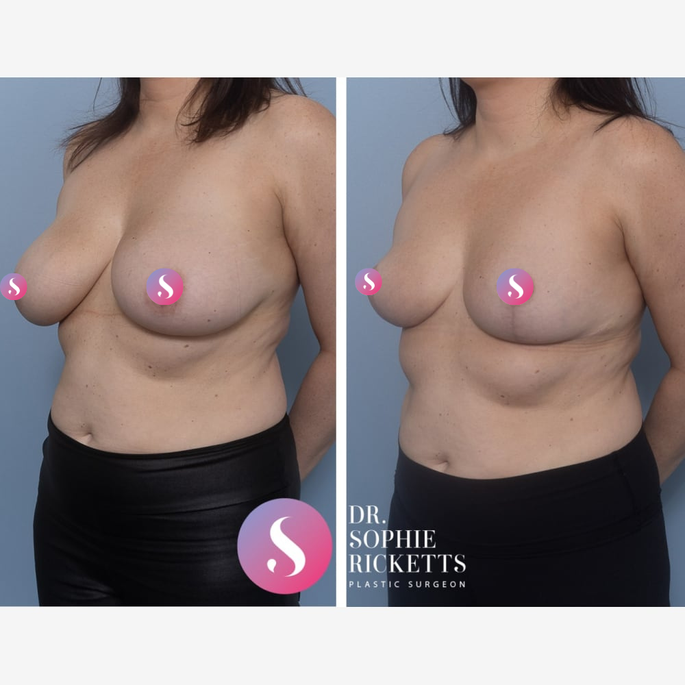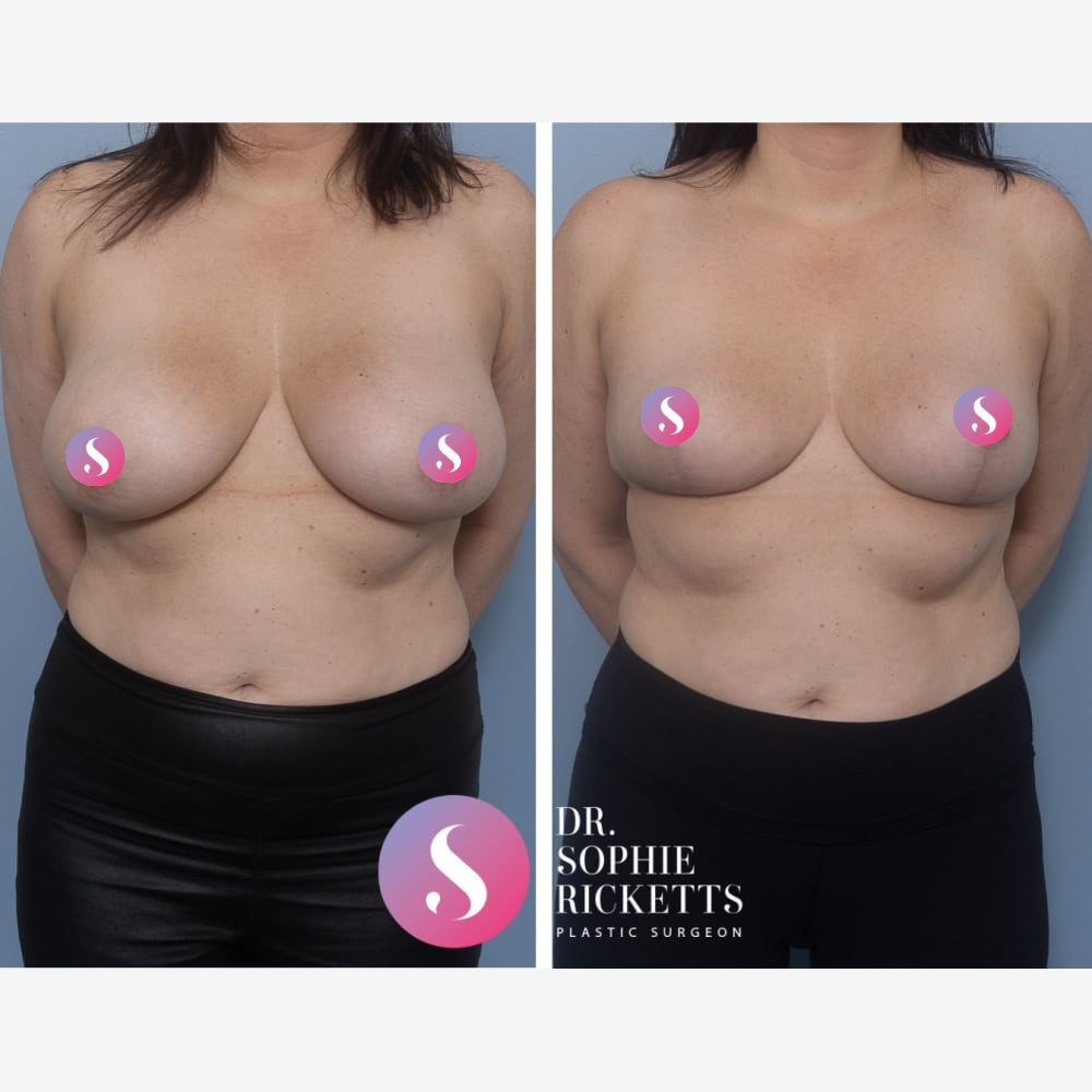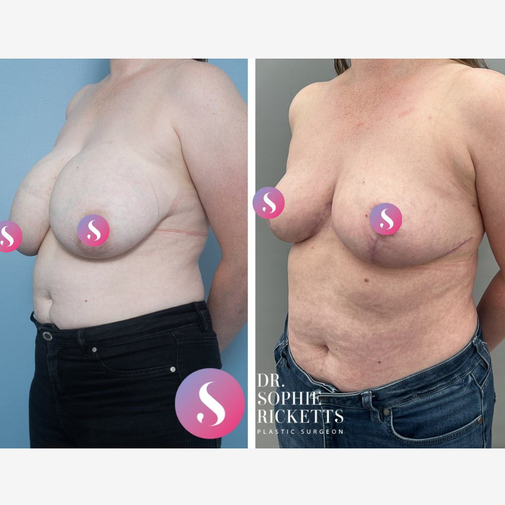 Permanent Scarring: Scars are an inevitable result of this surgery, typically occurring around the areola, vertically down the breast, and in the crease underneath. While these fade gradually over about 12 months, the final appearance is unpredictable.